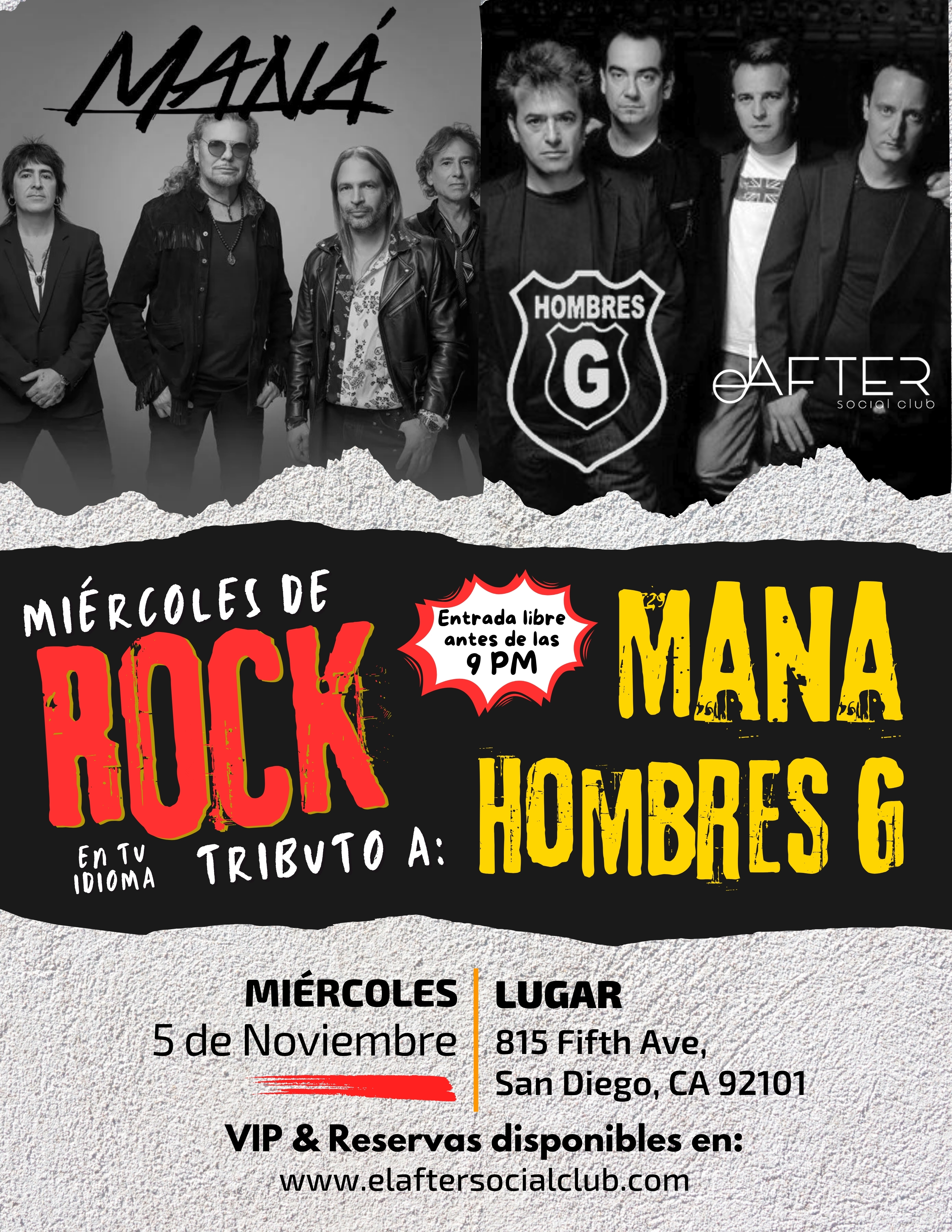 Prepárate para una noche inolvidable con los grandes éxitos del rock en español. Disfruta un show en vivo lleno de energía, nostalgia y pasión, donde revivirás los temas más icónicos de Maná y Hombres G.
